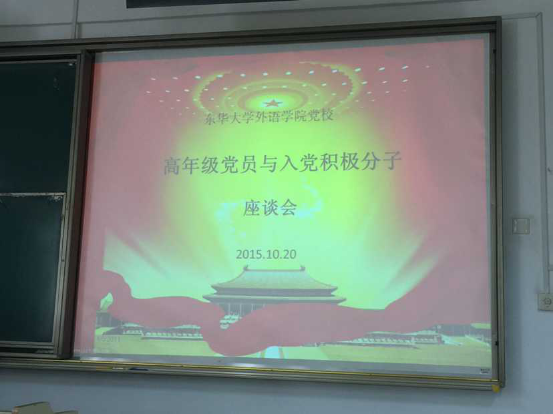 1 10月22日,365英国上市网站官网高年级学生党员与第68期党校入党积极分子座谈会在松江校区第一教学楼1105教室顺利举行,会议由入党积极分子培训班成员张丽华主持,为时两小时,内容丰富又充满意义,与会双方都表示收获颇丰。
