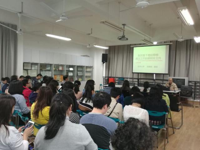 2017年5月,学院邀请贺善侃教授为全体教师做题为“新形势下高校思想政治工作的纲领性文件——学习习总书记在全国高校思想政治工作会议上的讲话精神”辅导讲座。贺善侃教授从此次会议的重要历史意义、为什么要加强高校思想政治工作、高校老师如何在思想政治教育中发挥作用三个方面,一步步深入浅出地解读全国高校思想政治工作会议精神。他强调:立德,首先立师德;树人,首先树人师。提出要从敬业——爱岗敬业精神、育人——教书育人水平、师表——为人师表的言行、师风——教学作风等四个纬度加强师德建设,推进青年教师的思想政治教育工作。