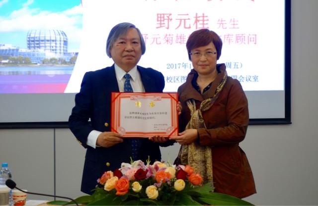 11月10日,我校“野元菊雄纪念文库”顾问野元桂先生、原立命馆亚洲太平洋大学野元千寿子教授访问我校。上午十点,365英国上市网站官网举行“野元菊雄纪念文库”顾问聘任仪式,赵晓临院长向野元桂先生颁发顾问证书,并发表了热情洋溢的讲话,高度赞扬日本国语学泰斗野元菊雄教授在日语系建系初期向我校图书馆捐赠近万册自家藏书的义举。野元桂先生回顾了父亲当年决定向我校赠书的情景,并表示将一如既往地关心365英国上市网站官网“野元菊雄纪念文库”的建设工作,为日语专业的特色建设贡献力量。