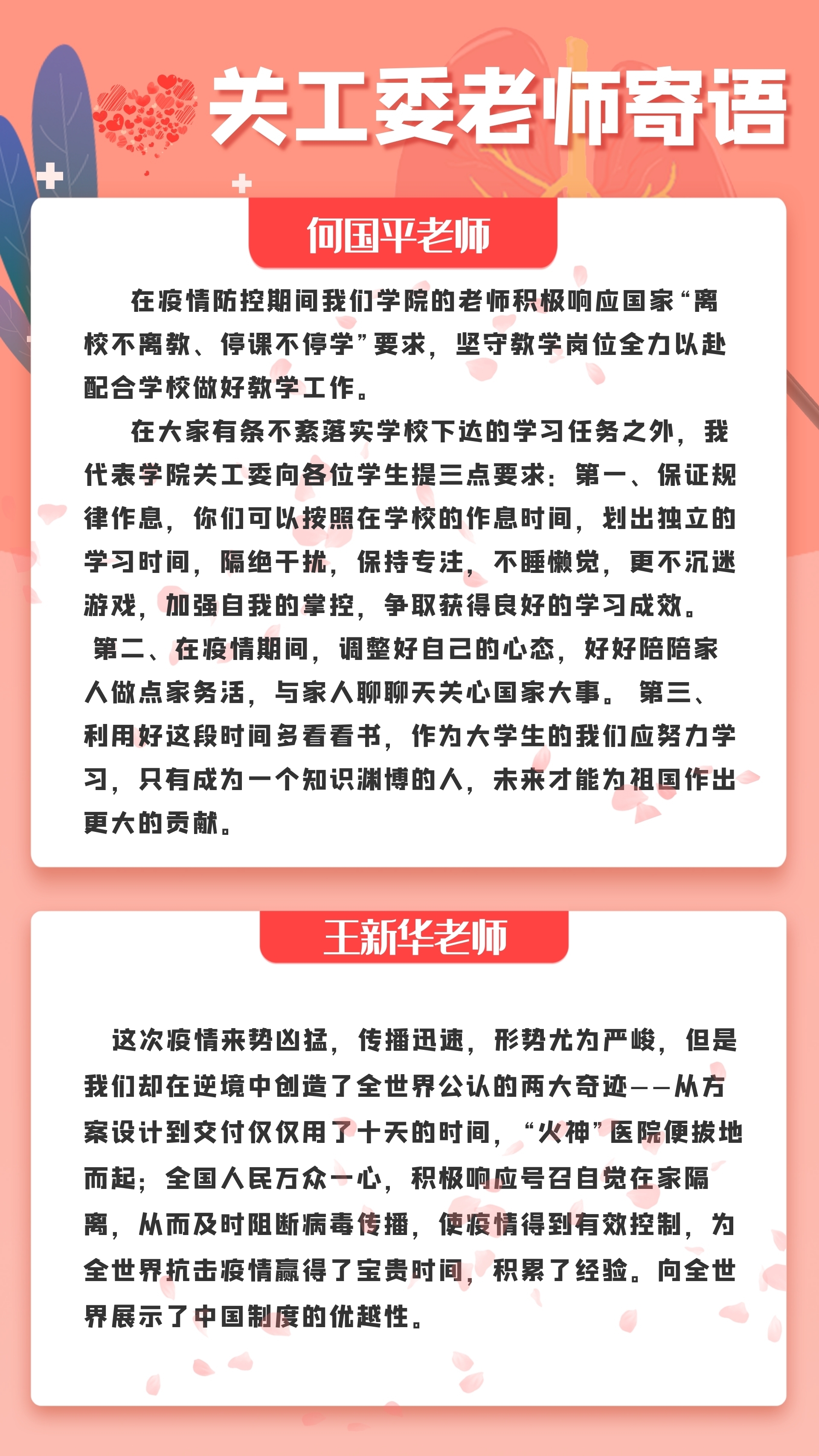 新冠肺炎疫情发生期间,为深入学习贯彻习近平新时代中国特色社会主义思想,大力弘扬新时代爱国主义精神,围绕学校中心工作,加强入党积极分子的培养力度,切实提高大学生党员发展质量,365英国上市网站官网党校在365英国上市网站官网党校和365英国上市网站官网党委的指导下,根据学校和学院关于加强党员发展和教育管理工作的部署和相关要求,秉持培养不断线的原则,采取“云开班 云动员”、“云学习 云讨论”、“云寄语 云结业”的模式,进一步帮助入党积极分子深入学习领会习近平新时代中国特色社会主义思想,认真学习党史国史,严格遵守党章与党纪党规,坚定中国特色社会主义道路自信、理论自信、制度自信、文化自信,坚持爱党爱国爱社会主义相统一,发挥模范引领作用