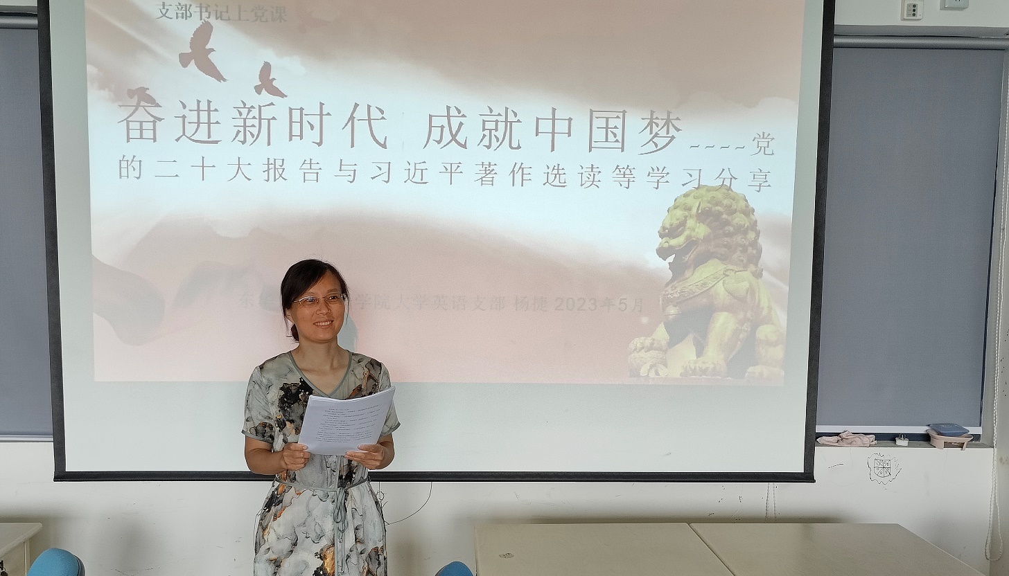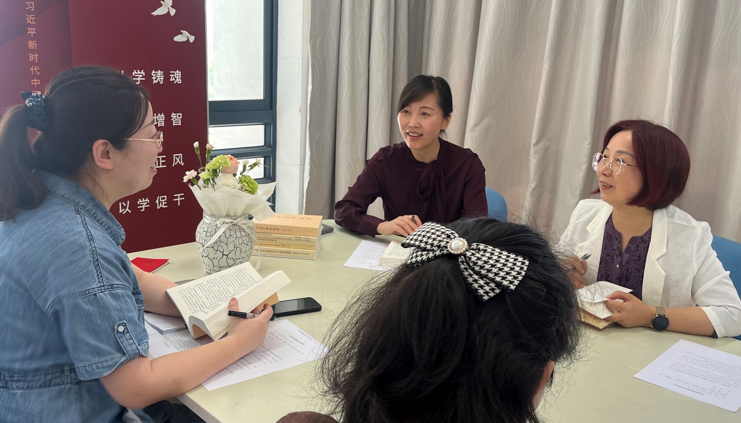 5月30日,大学英语党支部书记杨捷与支部党员分享学习体会